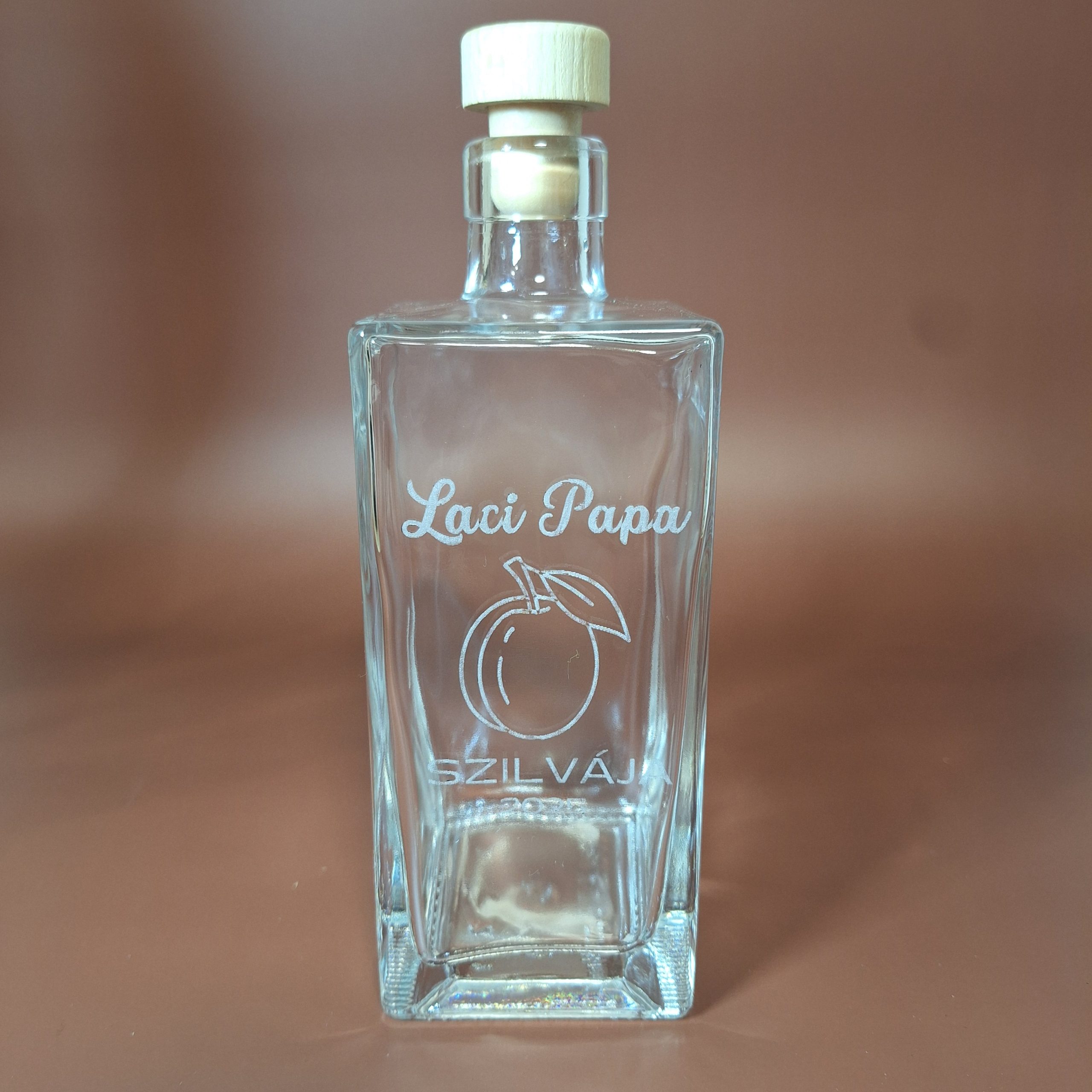 Nászajándék: Egy gravírozott palack, benne a család legjobb pálinkájával, a legszemélyesebb ajándék az ifjú párnak.